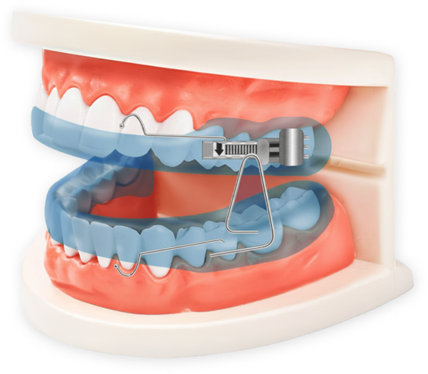 구강내장치 치료는 잠자는 동안 입안에 장착하는 환자 맞춤형 코골이 치료 장치입니다.